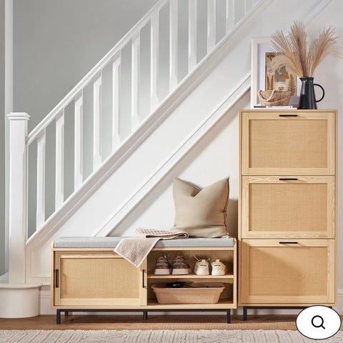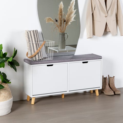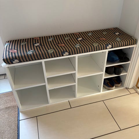 Fin og velholdt Egeskov bænk/skoreol (stål/hvid) fra røg- og dyrefrit hjem