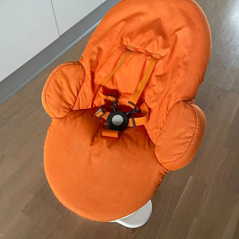 Blå stokke steps bouncer kan bruges som alm skråstol eller sættes på stokkestolen.
