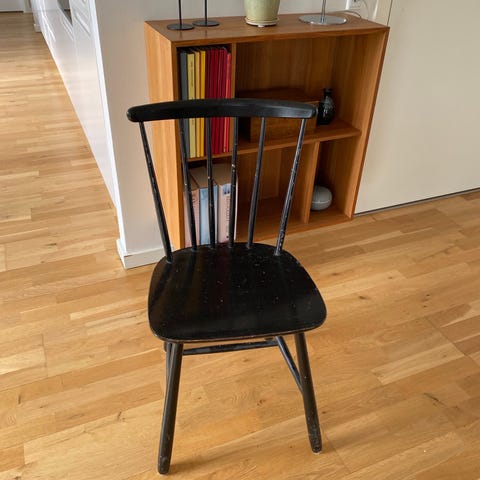 jeg sælger denne lysegrå pindestol, som jeg har brugt til mit skrivebord! Den er købt på et loppemarked, og har et lidt ‘nostalgisk’ look!✨ da malingen er skaldet af nogle steder, som vist på billederne.