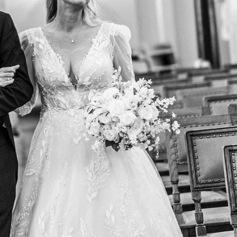 Sælger min smukke brudekjole, som jeg bar til mit bryllup i august. Kjolen er fra det tyske mærke Kaviar Gauche, som laver unikke galla- og brudekjoler. Størrelsen er 36, men den er justeret til hos en skrædder og er derfor mellem størrelse 34 og 36. Jeg bruger normalt 34/36 og er 1.69 cm høj.