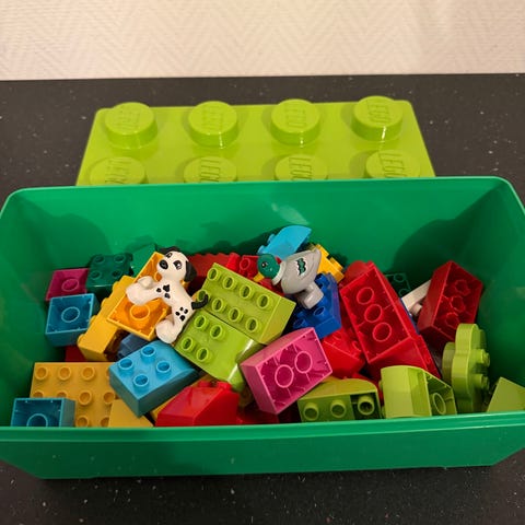Stor kasse fyldt op med Lego. Der er et flere forskellige sæt i kassen som fx. Elsa og Anna Frost-slottet, dyrelægebutik og en båd. Desuden en masse løse klodser. Lego klodserne er næsten som nye og fejler ikke noget.