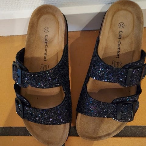 Jeg sælger et par sorte CPH comfort sandaler, som minder om et par Birkenstock sandaler.