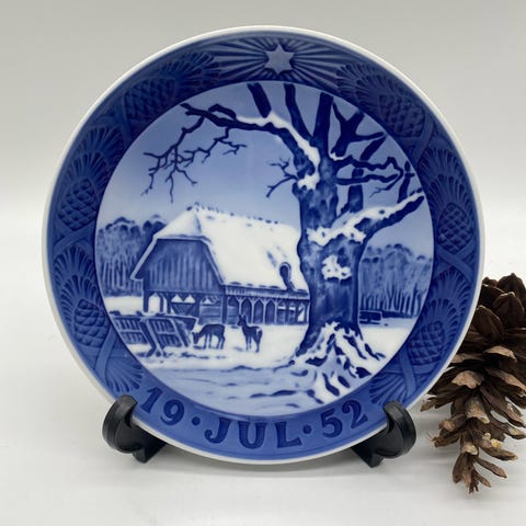 En klassisk og historisk Royal Copenhagen Christmas plate fra 1961, designet af Kaj Lange.