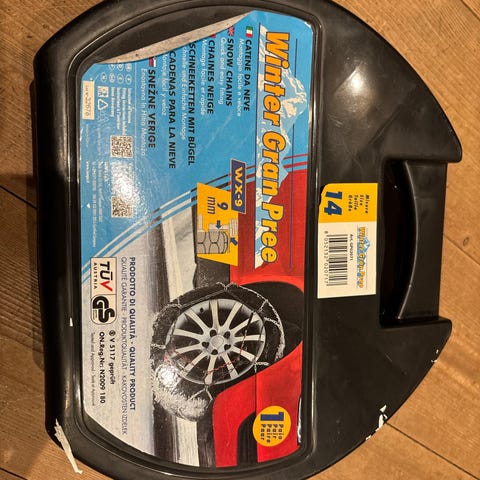 KWB Tempomatic Special sneketænger til bilhjul. Snekæderne er designet til at øge vejgrebet på sne- og isglatte veje. Produktet leveres i en rød opbevaringskasse med håndtag for nem transport og opbevaring.
