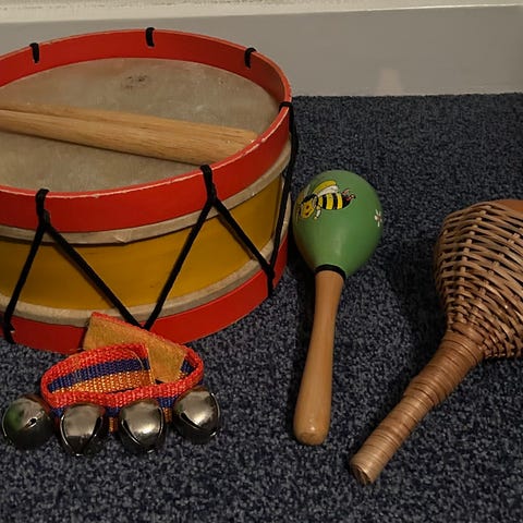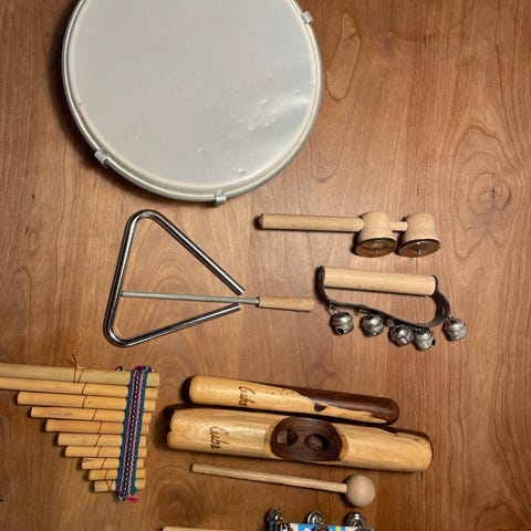 Her ligger mange gode og uforglemmelige timer i disse instrumenter og tilbehør. Glade børnestemmer, lys i øjnene, begejstring i kroppene! Masser af eventyr og fantasi er blevet sluppet løs i sang, leg og rytmer!