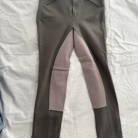 Horze ridebukser til piger i størrelse 34. Bukserne er sorte og lavet af et elastisk materiale, der sikrer komfort og bevægelsesfrihed under ridning. Designet inkluderer forstærkede områder for øget holdbarhed og funktionalitet.