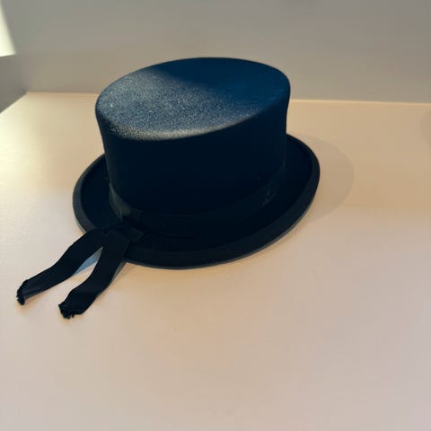 God og fin dressur hat i str. 56. Æsken haves ikke, men har brugt en plastik kasse til at opbevarer den i.