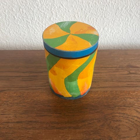 God stand, specielt indvendig - udenpå lidt misfarvning på låget og små ridser.