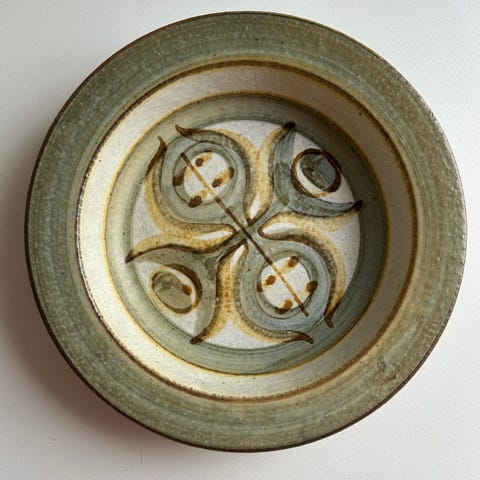 Bangholm skål i stentøj med sort glasur i bunden og råt, brunt ydre. 22 cm. Velegnet til servering eller dekoration.