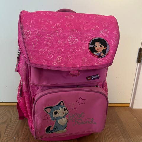 Skoletasken har været brugt i et skoleår, skemaet i tasken er ubrugt, der er ingen skjolder eller synlig skader på tasken. Der medfølger idrætstaske som kan klikkes på tasken.