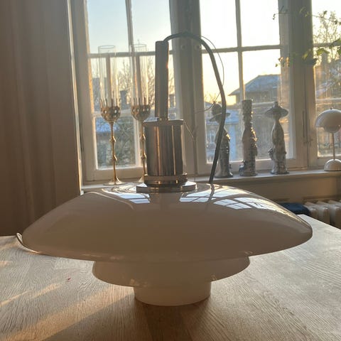 Louis Poulsen PH 4 1/2 - 4 pendel lampe designet af Poul Henningsen. Lampen har en diameter på 45 cm og er hvid glas med blank krom.