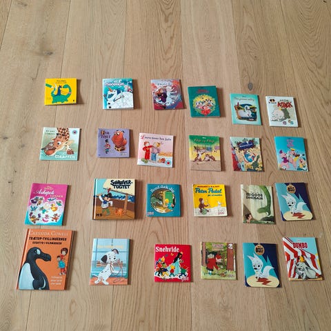 Mange forskellige, såsom pixi, disney. Generelt god stand, en enkelt malebog er der malet i.
