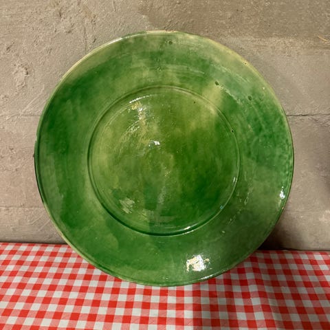 Stort, grønt stentøjsfad