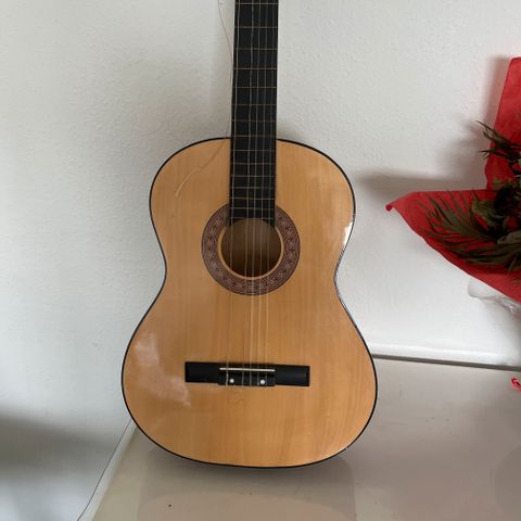 Ritter Akustiske guitarer Rød Akustisk guitar med klassisk design. Guitaren har en rød finish og seks strenge. Den er egnet til akustisk spil og har en traditionel form. Bemærk mindre skader på kanten af kroppen, som vist på billederne.