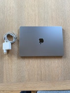 Apple MacBook Air 15" i Space Gray. Apple M2 chip, 16 GB RAM, 512 GB SSD. Købt i august 2023, men er stort ikke brugt så fremstår som ny. Batteri er 100% med kun 10 lade cycles. Lader og kvittering fra Apple medfølger.