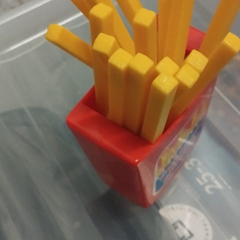 Skift til at ta' en pommes indtil de pludselig alle springer op af æsken.