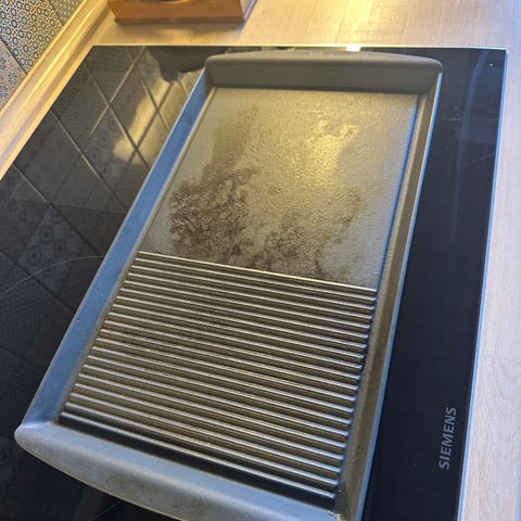 Witt støbejerns grillfad til induktionskogeplade. Med dette grillfad har du nu mulighed for at grille din mad indendørs, støbejernet gør at maden bliver holdt var længe. Grillfaddet har målene 46x26 cm.