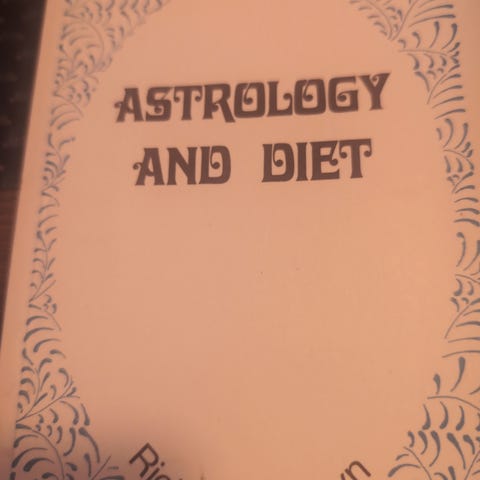 Richard Jenkyns Astrology and Diet bog. Indeholder information om sammenhængen mellem astrologi og kost, udgivet som en del af HEALTH IN THE HOME serien. Bogen er trykt i paperback format og indeholder råd om sundhed og ernæring baseret på astrologiske principper.