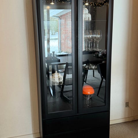 Der er ledning til lys i vitrineskabene.