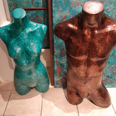 Jernskulptur i sort, skomager værktøj. Særegent som skulptur ude eller inde.