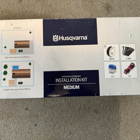 Husqvarna tilbehørssæt indeholdende kabler, beslag og tilslutningsdele.