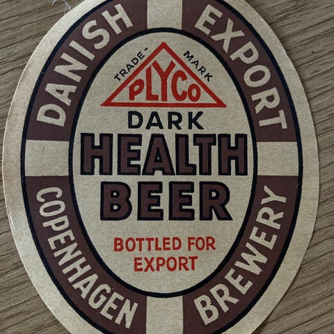 Fin og enkel øl-etiket fra Danebeer, Copenhagen med teksten Corona Export Beer.
