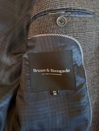 Flot Bruun & Stengade blazer i mørkebrun med elegant mønster og mørk foring.