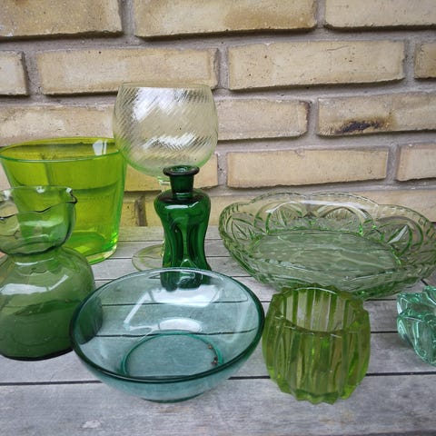 Grønne glas skåle og hyacintglas