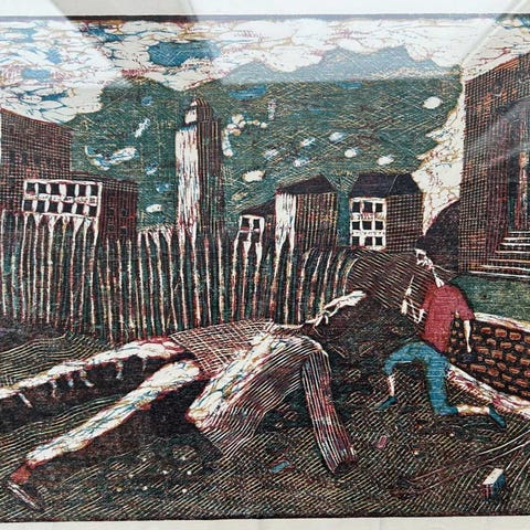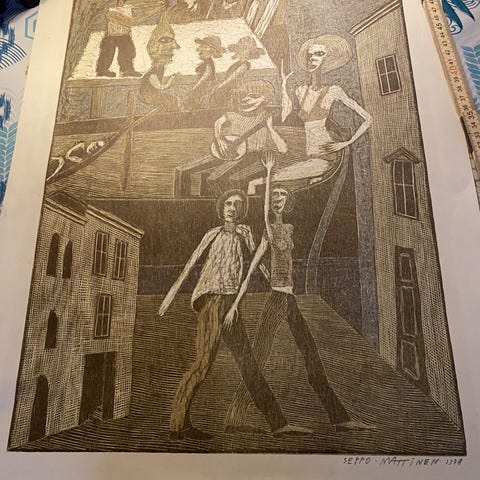 Mappe med 5 træsnit fra 1973 incl nummerering og signatur (nr 53 af 600)