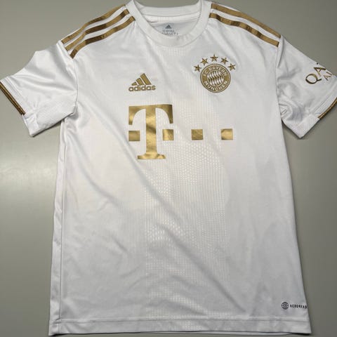 Adidas FC Bayern München Coman fodboldtrøje i hvid med guld detaljer. Trøjen er lavet i åndbart materiale og har kortærmet design. Den har nummer 11 og navnet Coman på ryggen. Egnet til sport og fritid.