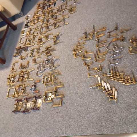 Der er både bakelitdørhåndtag mange messingdørhåndtag og i det hele taget alt fra discount til Zeppeliner til top top kvalitet af antikke bronzedørhåndtag fra deciderede herskabslejligheder. En del kunne koste 1000 kr stk hos Genbyg.