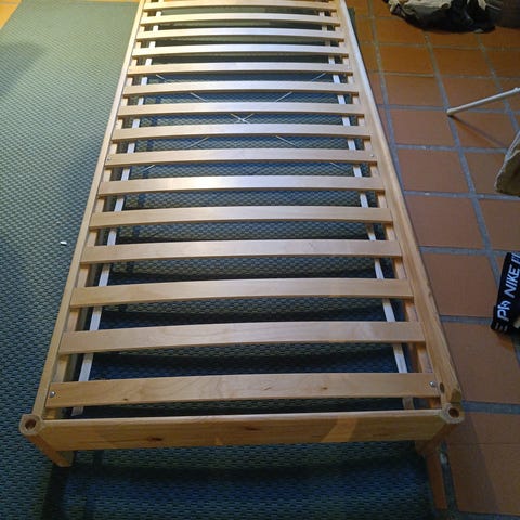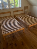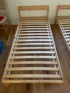IKEA sengestel i træ, 2 stk. Sengestelene er lavet af lyst træ med lamelbund.