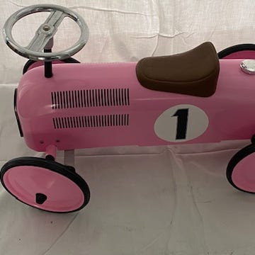Sej gå bil formet som en formel 1 bil her kan barnet have det sjovt i flere timer, kan bruges inde som ude. Bilen har metal hjul og gummi dæk. Plastisk sæde. Bilen er lavet af metal. Max vægt 20 kg. Har sat en politi sirene på som lyser og har lyd - dog lige til at tage af.