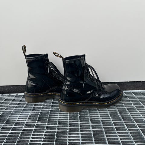 Let brugte sorte støvler, fremstår med enkelte brugsspor, kan nok pudse og vaskes som nye
