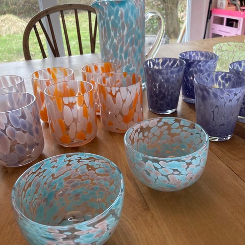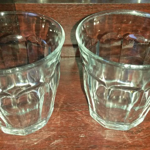 4 stk plastic glas. Lyseblå ikke åbnet i original emballage. Symbolet viser de tåler opvaskemaskine. 20kr for alle 4 / pakken