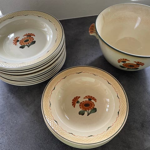 Morgenfrue Spisestel med tallerkener, kande og sovseskål