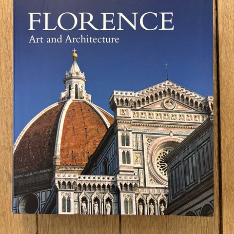 Art and History of Florence Bog med fokus på Florences kunst og historie. Indeholder billeder og beskrivelser af arkitektur og kunstværker i byen, herunder detaljerede illustrationer af kuplen og loftsudsmykninger.