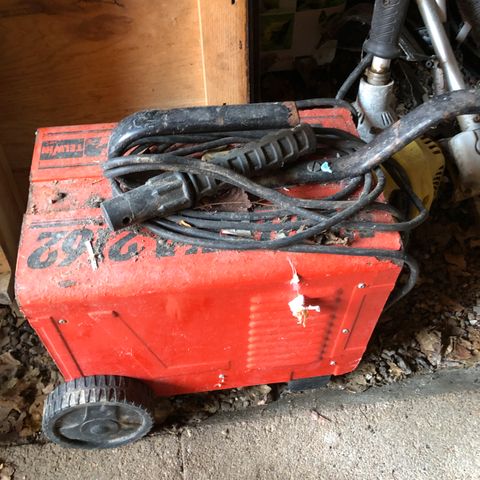 Brugt svejseværk til mindre opgaver. Kan ikke lave lange svejsninger, pga sikring/over ophedning. Nye kabler/2 stk.