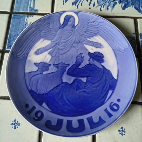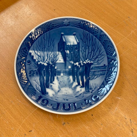Royal Copenhagen Juleplatte 1917 1. Sort. Med vor frelser kirke