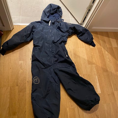 Minymo flyverdragt i blå farve, størrelse 98. Flyverdragten har en hætte og er lavet med isolerende materiale, der egner sig til koldt vejr. Den er velegnet til udendørs brug