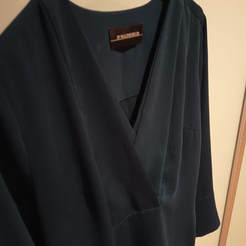 By Malene Birger Bluse i blå farve, størrelse L. Blusen har plisserede detaljer ved halsudskæringen og knaplukning ved ærmerne. Materialet er let og velegnet til kvinder.