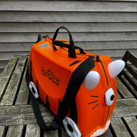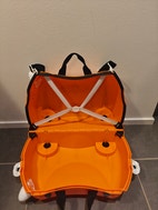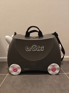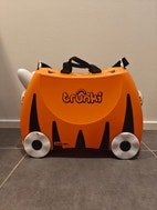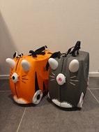 1 Trunki tiger og 1 Trunki kat, god og sjov kuffert for børn, som øger sandsynligheden for, at ungerne selv har lyst til at trække deres baggage igennem lufthavnen🙂 Kan løftes som en almindelig kuffert, trækkes som en trillekuffert eller barnet kan sidde ovenpå kufferten og skubbe sig afsted eller blive trukket af en voksen. 1 stk for kr 60, 2 stk for kr 100, sælges helst samlet.