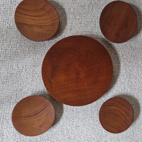 6 tallerkner i teak - dia 25 cm - Pris er samlet