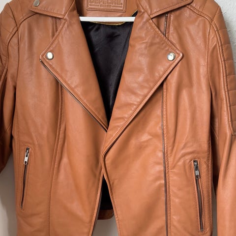 Flot og lækker DEPECHE skind jakke m/rever og knap lukning