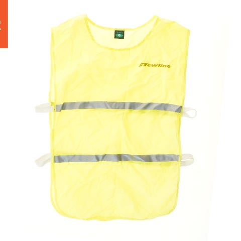Sikkerhedsvest i gul farve fra Harald Nyborg. Ultralet med to refleksstriber.