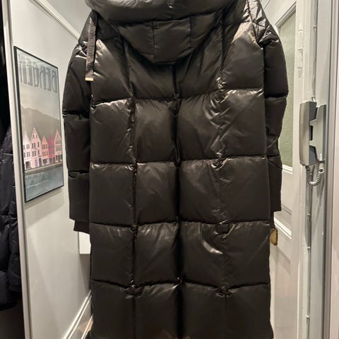 Lækker Nova dun frakke i farverne oliven og brun med varm orange.