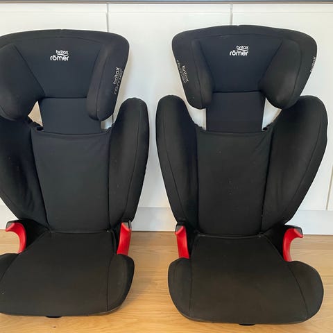 Britax Römer Autostole. Vi sælger 2 stk, men de kan også købes enkeltvis - kom frisk! Prisen er per styk. Mindre (og ganske ubetydelig) skade på stoffet på den ene stols øverste kant.