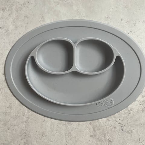 2 kopper i støvet grøn i silikone der er som nye. En tallerken i støvet grøn med misfarvning i det ene øre. Støvet grå blå tallerken med lillebitte ridse i kanten. Samlet pris 200 kr. Byd gerne for enkeltdele.