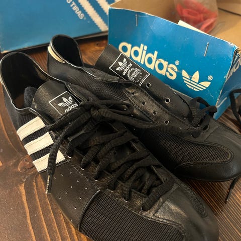 Helt nye Adidas cykelsko. Carbon bund. Med velcrolukning og snørrebånd. Fra starten af 90'erne. Jeg har to par.