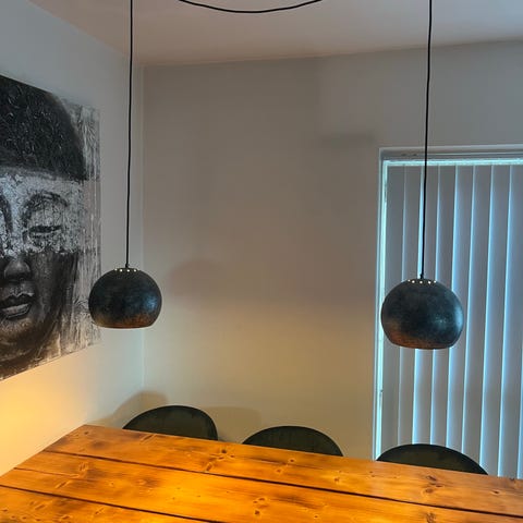 Højde 45cm (selve lampen) + regulerbar ledning.